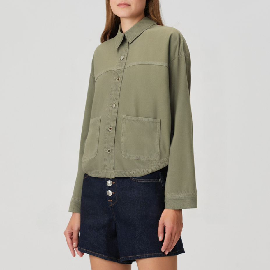 This women's jacket features a classic lapel design, creating a clean, streamlined neckline and perfect for a variety of occasions. The button-down front closure makes it easy to put on and take off while maintaining a neat look. Practical side pockets provide storage for small items and add a touch of layering. The curved hem softens the overall line, creating a light and flowing effect. The overall simple and elegant silhouette combines comfort and style, easily layering with trousers or skirts for everyday wear or commuting.