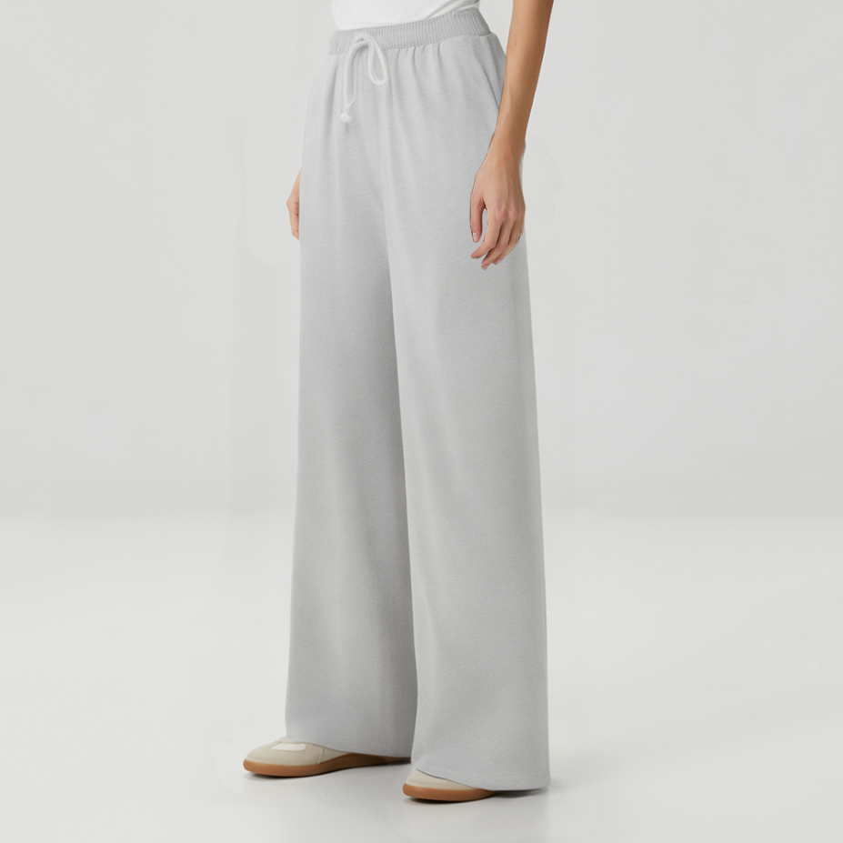 These women's casual trousers feature a simple yet elegant design. The straight-leg silhouette flatters a wide range of body types, creating a relaxed and effortless look. The elastic waistband with drawstring ties allows for a customizable waistline for a comfortable fit. The side pockets are both practical and stylish, conveniently storing small essentials. Whether for everyday travel, lounging at home, or a casual workout, these trousers easily pair with any top for a natural and effortless look.