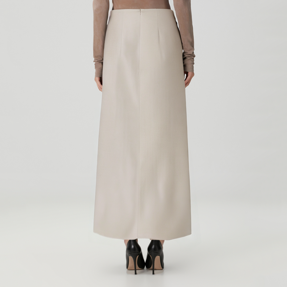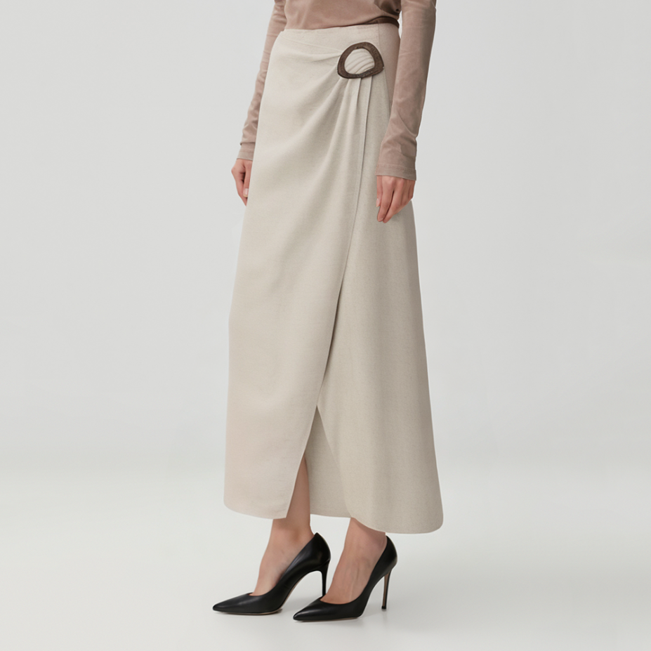 This women's skirt features a straight-cut design for a clean, streamlined silhouette. The front slit adds a touch of movement and style, while also making it easy to walk. Side buckles add a touch of detail, adding a touch of individuality and sophistication. A rear zipper allows for easy on and off, while maintaining a clean, flowing silhouette. The overall style is modern and elegant, perfect for everyday wear, dates, or casual get-togethers, effortlessly showcasing a woman's confidence and elegance.