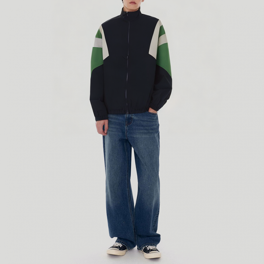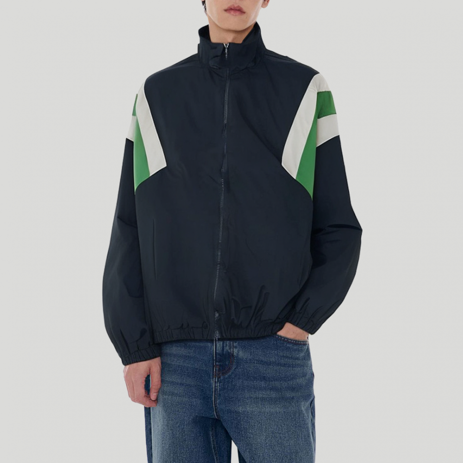 This men's jacket is designed for windproof protection and provides all-weather comfort. Colorblocking adds a stylish touch, creating a layered and visually striking look. A front zipper allows for easy on and off while maintaining a snug fit. Elastic cuffs and an elasticated hem effectively block out wind and cold, enhancing warmth. Practical side pockets provide space for keys, a phone, and other essentials. The relaxed fit accommodates all body types, ensuring comfort and mobility, making it an ideal choice for casual, everyday wear, and light outdoor activities.