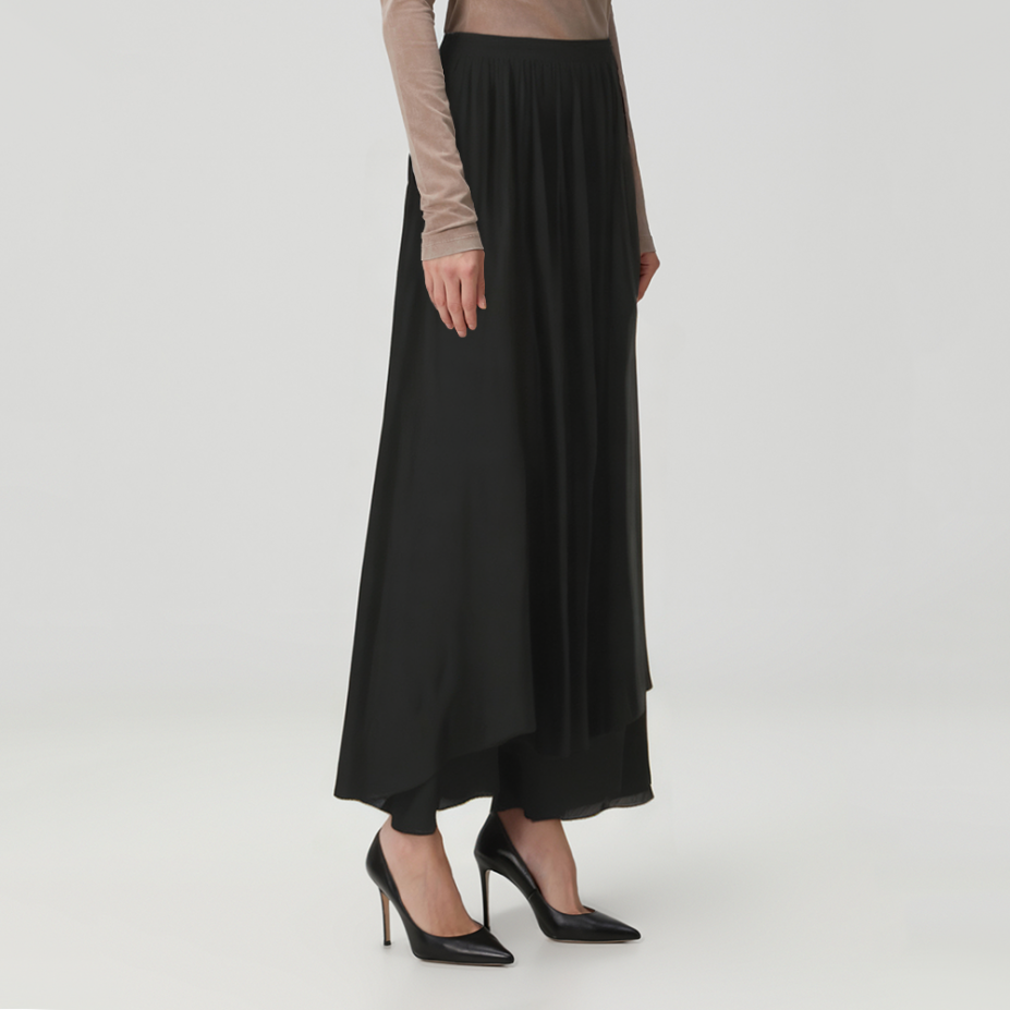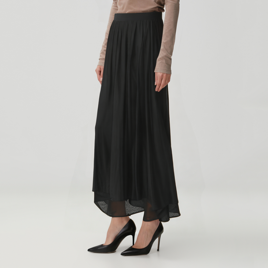 Black simple pleated loose women's skirt