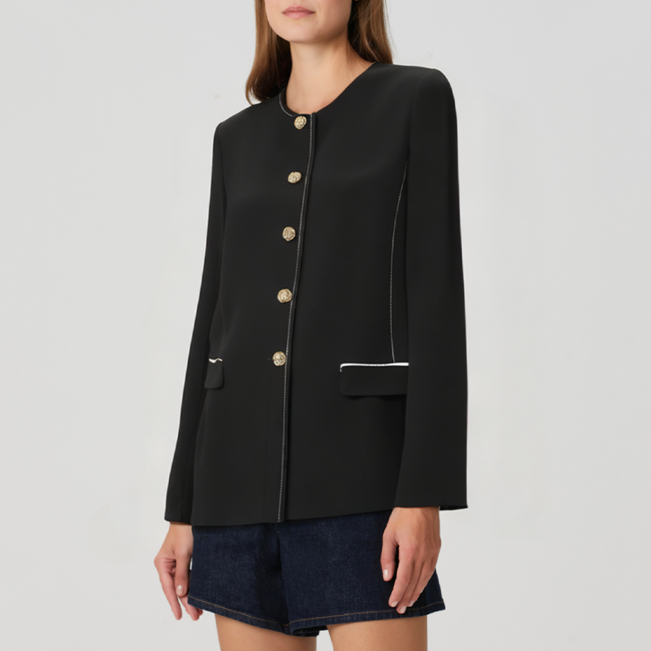 Women's round neck contrast stitching blazer