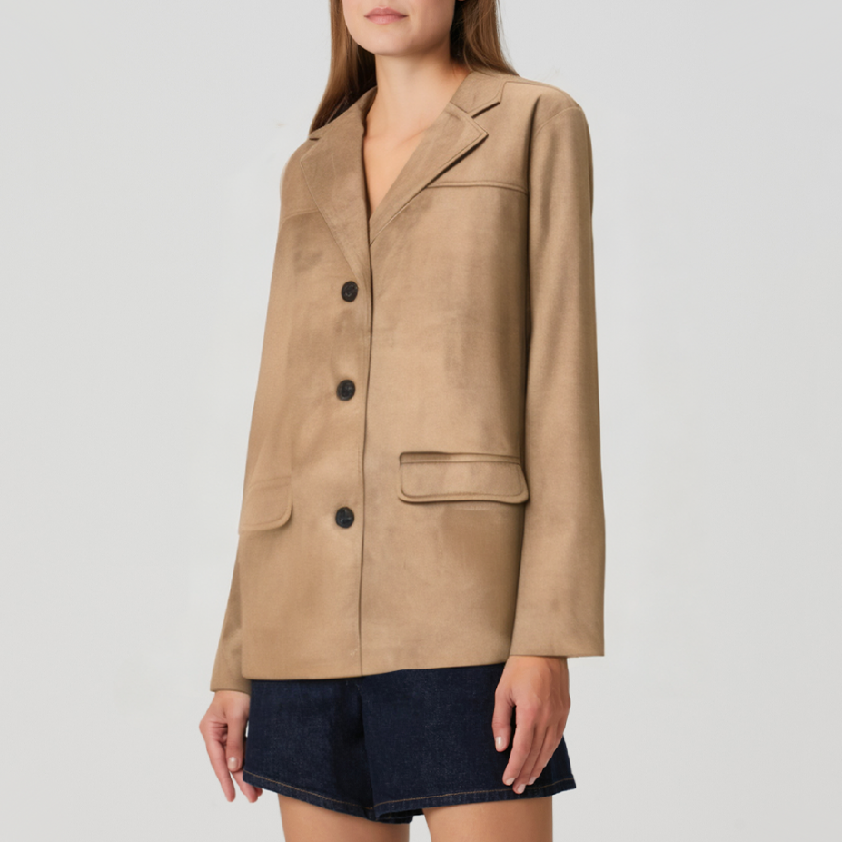 This women's jacket is crafted from faux velvet, boasting a soft, delicate texture and lustrous sheen, creating an elegant look. The classic lapel design enhances its vintage style, while the button closure allows for easy on and off, adding a touch of refined detail. The side flap pockets are both practical and decorative, easily storing small essentials. The comfortable, loose fit makes it versatile, perfect for everyday wear, casual dates, or evening out, showcasing effortless elegance.