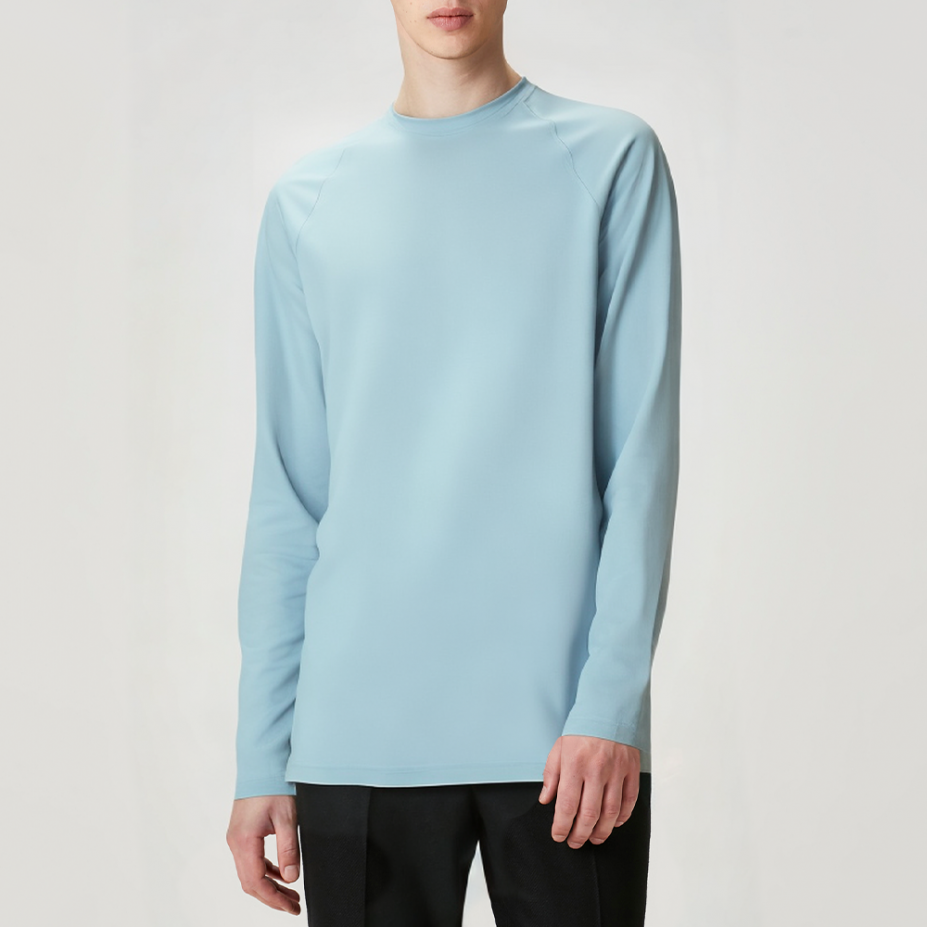 This men's long-sleeved top features a simple, blank design for a clean, effortless look that easily complements any casual or everyday look. The classic crew neckline fits comfortably, and the long sleeves are versatile for all seasons. The straight hem creates clean lines and maintains a crisp, clean silhouette. The breathable fabric provides comfort, and the regular fit allows for freedom of movement and a comfortable fit, making it perfect for casual wear, lounging, or light exercise.