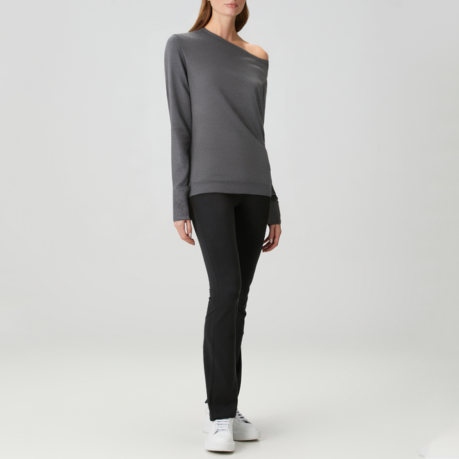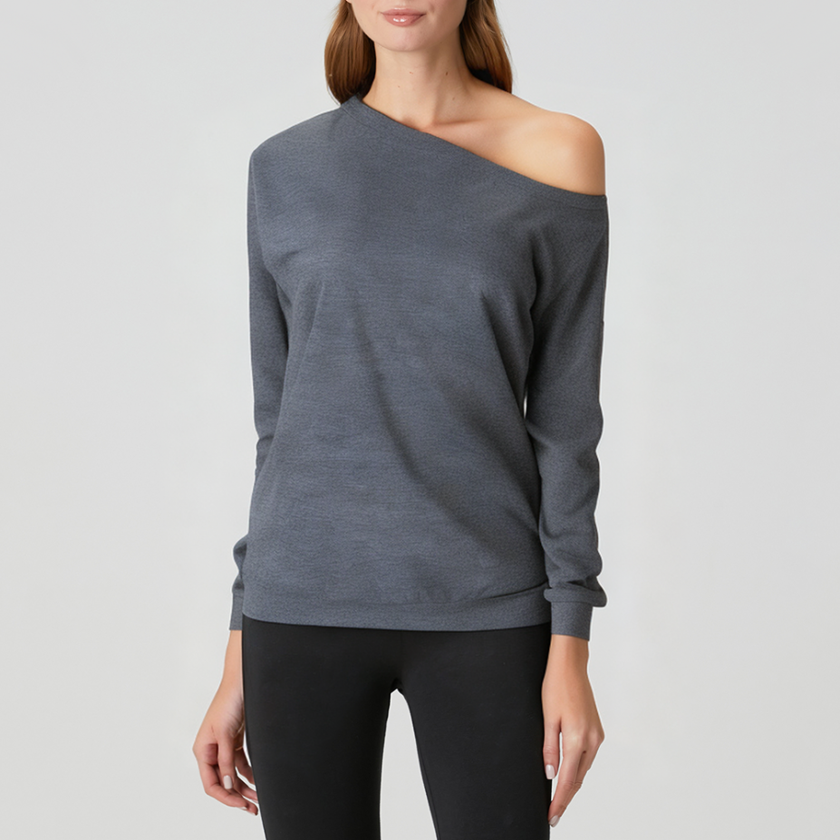 This women's long-sleeved top features a solid color scheme, making it simple and versatile, perfect for everyday wear. The distinctive slanted collar adds a touch of style and sophistication, flattering the neckline and adding dimension to the overall look. Elastic cuffs fit snugly at the wrist for added comfort and practicality. The straight hem creates a clean, effortless silhouette that pairs easily with jeans, casual pants, or a skirt for a casual yet elegant everyday look. The overall style is simple and elegant, making it a wardrobe essential.