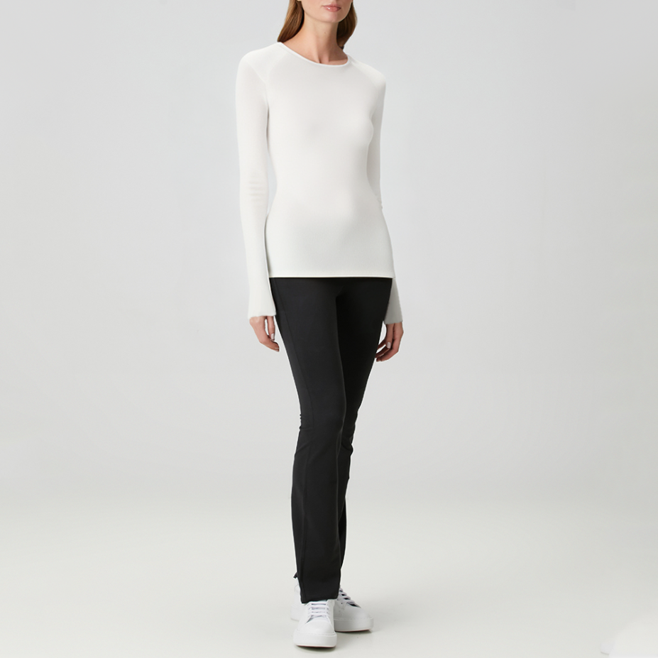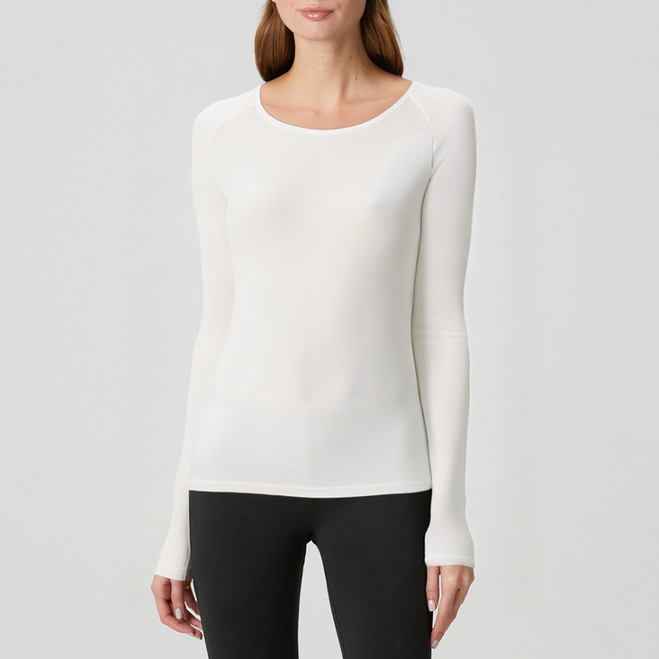 This women's long-sleeved top features a simple, solid color design with a classic round neck, showcasing a natural and elegant style suitable for various occasions. Made from soft and comfortable pure cotton, it has a delicate feel, is comfortable against the skin, and is highly breathable, keeping you dry and comfortable even after prolonged wear. The regular fit is neither too tight nor too loose, naturally flattering the figure. It pairs well with jeans, casual pants, or skirts, easily creating a stylish look for everyday work or leisure. The refined details at the cuffs and hem enhance the overall quality while ensuring freedom of movement.