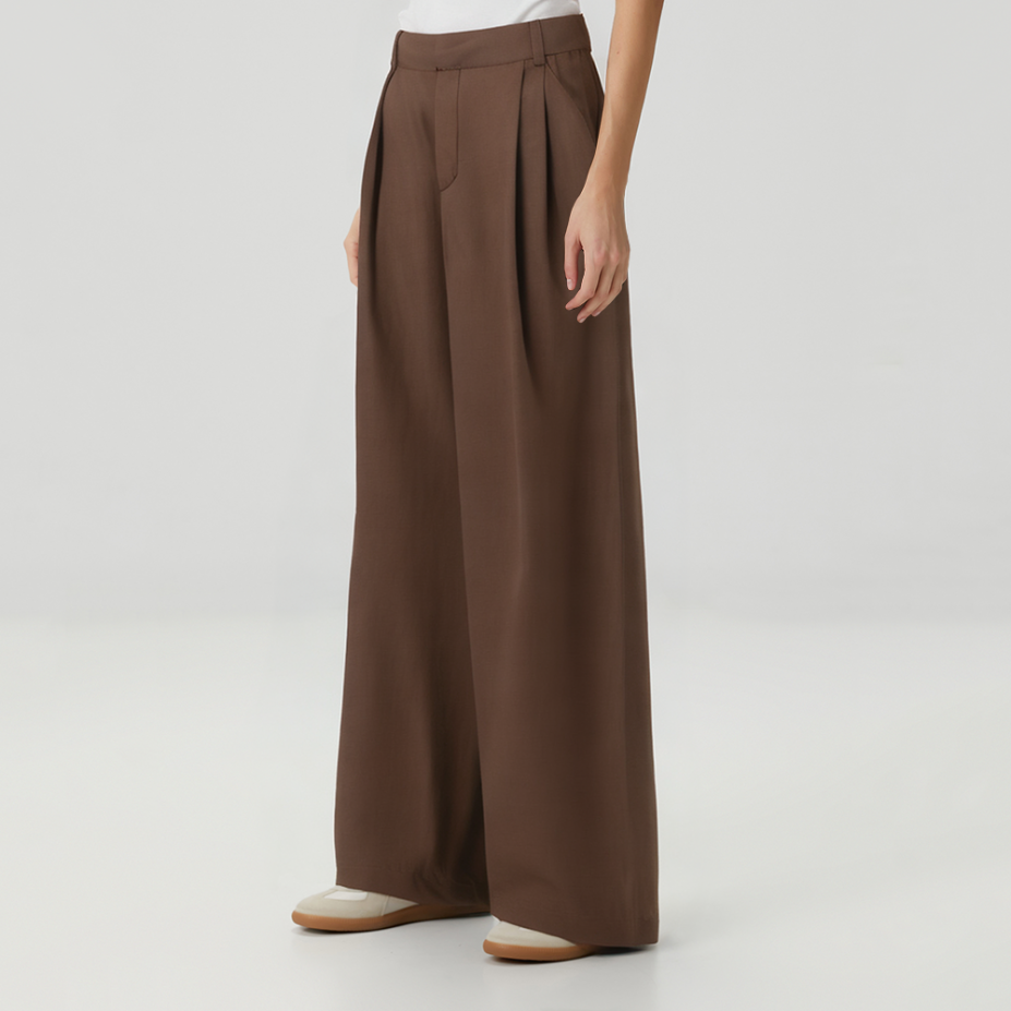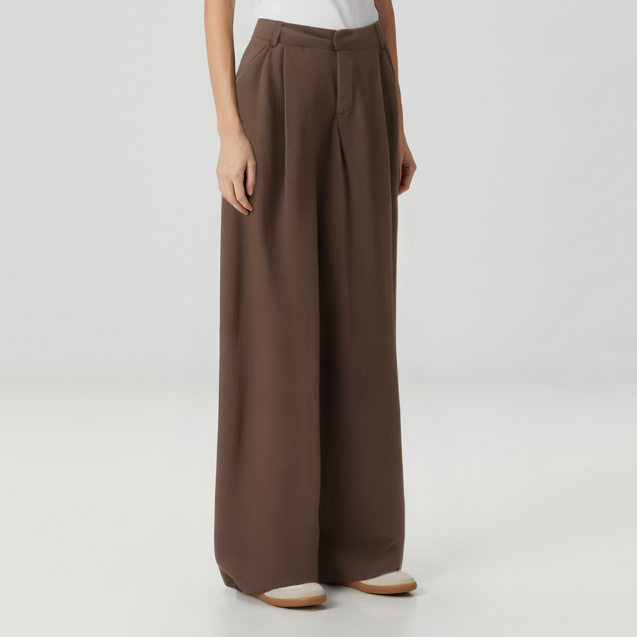 Versatile brown high-waisted women's casual trousers