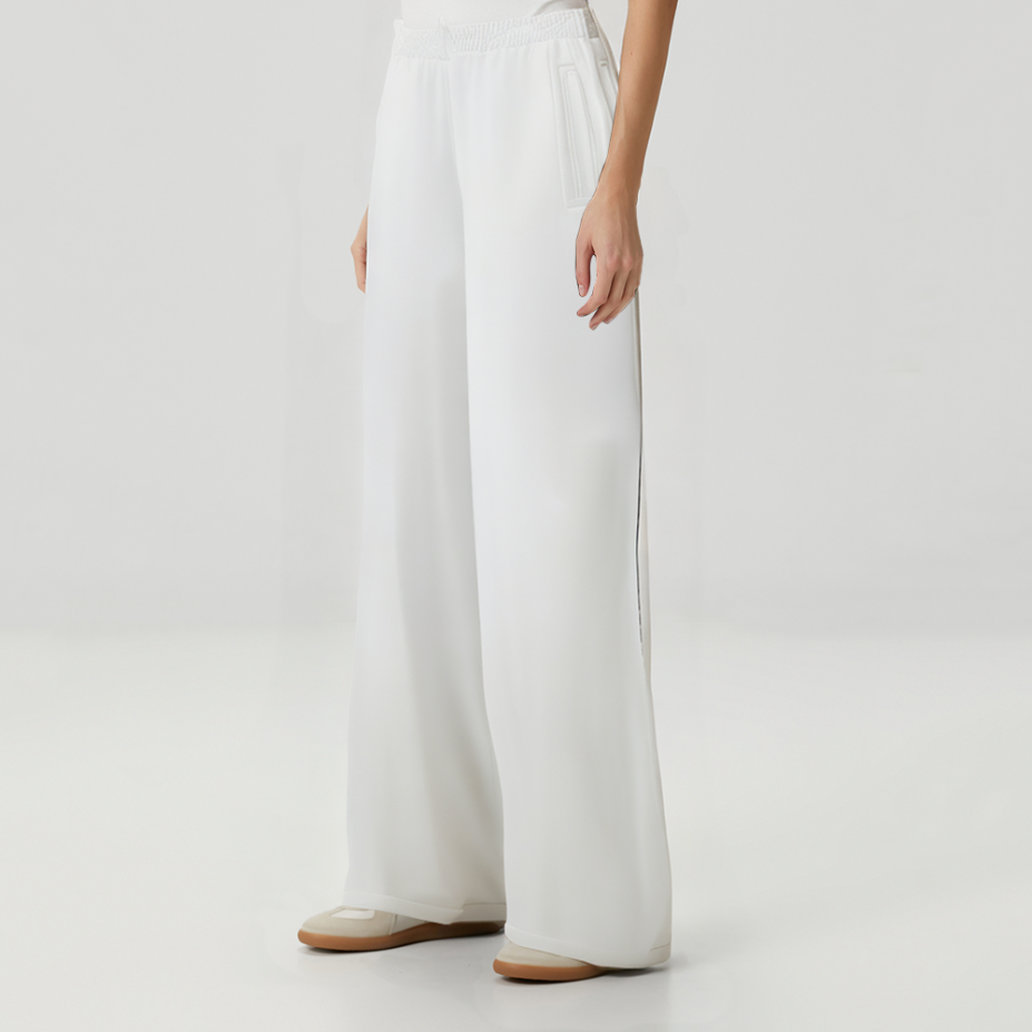 These women's casual trousers feature a straight-leg design for a simple, clean, effortlessly casual look. The elastic waistband ensures a comfortable fit and features an easily adjustable waistband. The practical and stylish side pockets easily store essentials. The side stripes add a sporty touch and visual dimension, adding a touch of style to the overall look. Whether you're casual, relaxing at home, or going out, these trousers easily coordinate with a variety of tops and shoes.